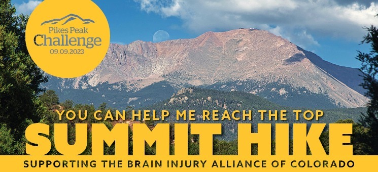 I’m participating in the Pikes Peak Challenge Summit Hike. A hike that is 13 miles and 7,400 vertical feet to the 14,115 foot summit of Pikes Peak! The purpose is to raise funds for the Brain Injury Alliance of Colorado (BIAC).